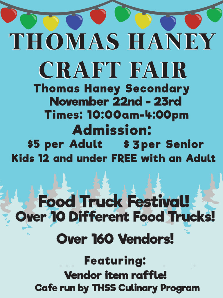 The Thomas Haney Craft Fair, the largest student run craft fair in B.C., is returning for its 3rd consecutive year back to the community after the pandemic. They've grown this year and will feature over 160 vendors from across BC at the event! All money collected from the THSS Craft Fair and Food Truck Festival goes directly to benefit the school.